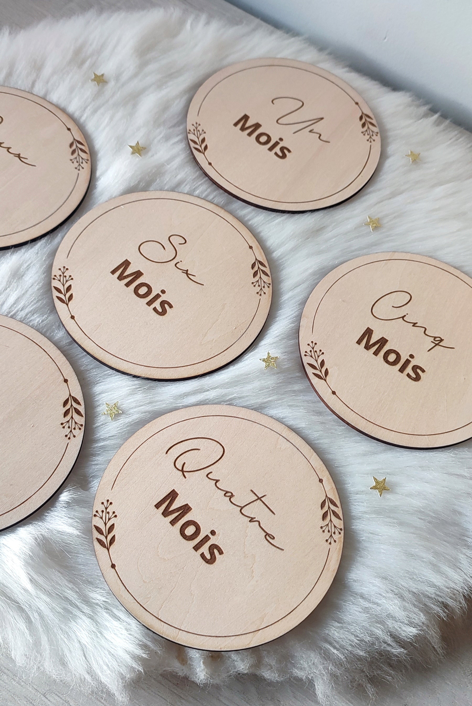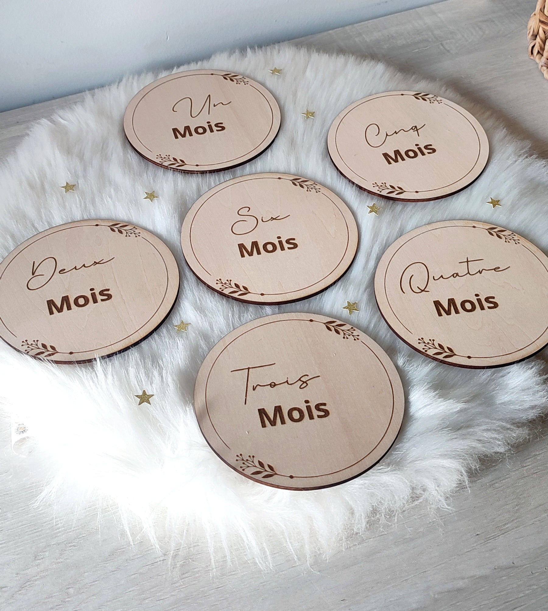 Lot de 13 cartes composés d'une carte "Bienvenue + prénom" et de 1 à 12 mois .