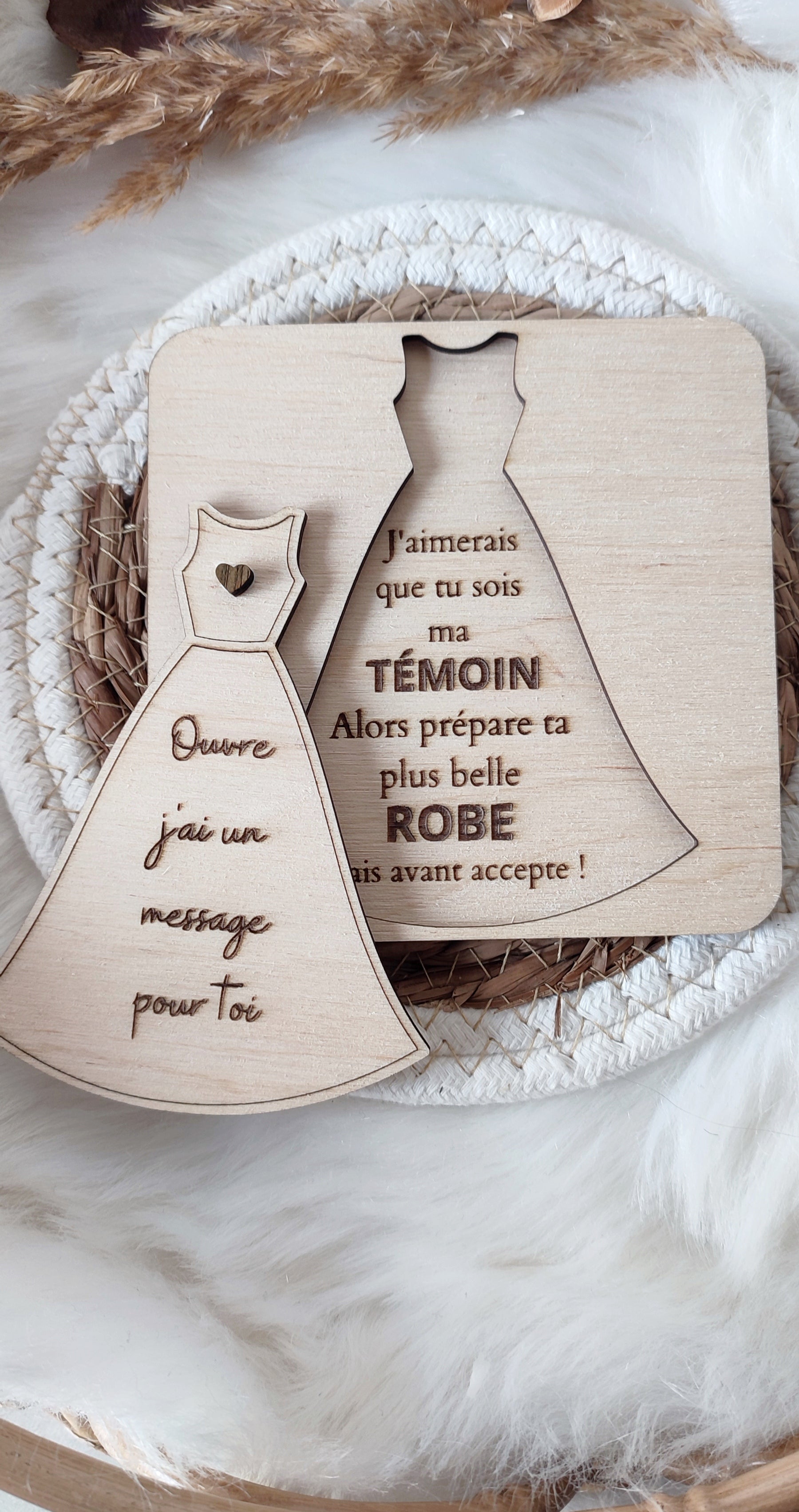 Puzzle demande de témoin " j'aimerais que tu sois ma témoin alors prépare ta plus belle robe mais avant accepte ! "