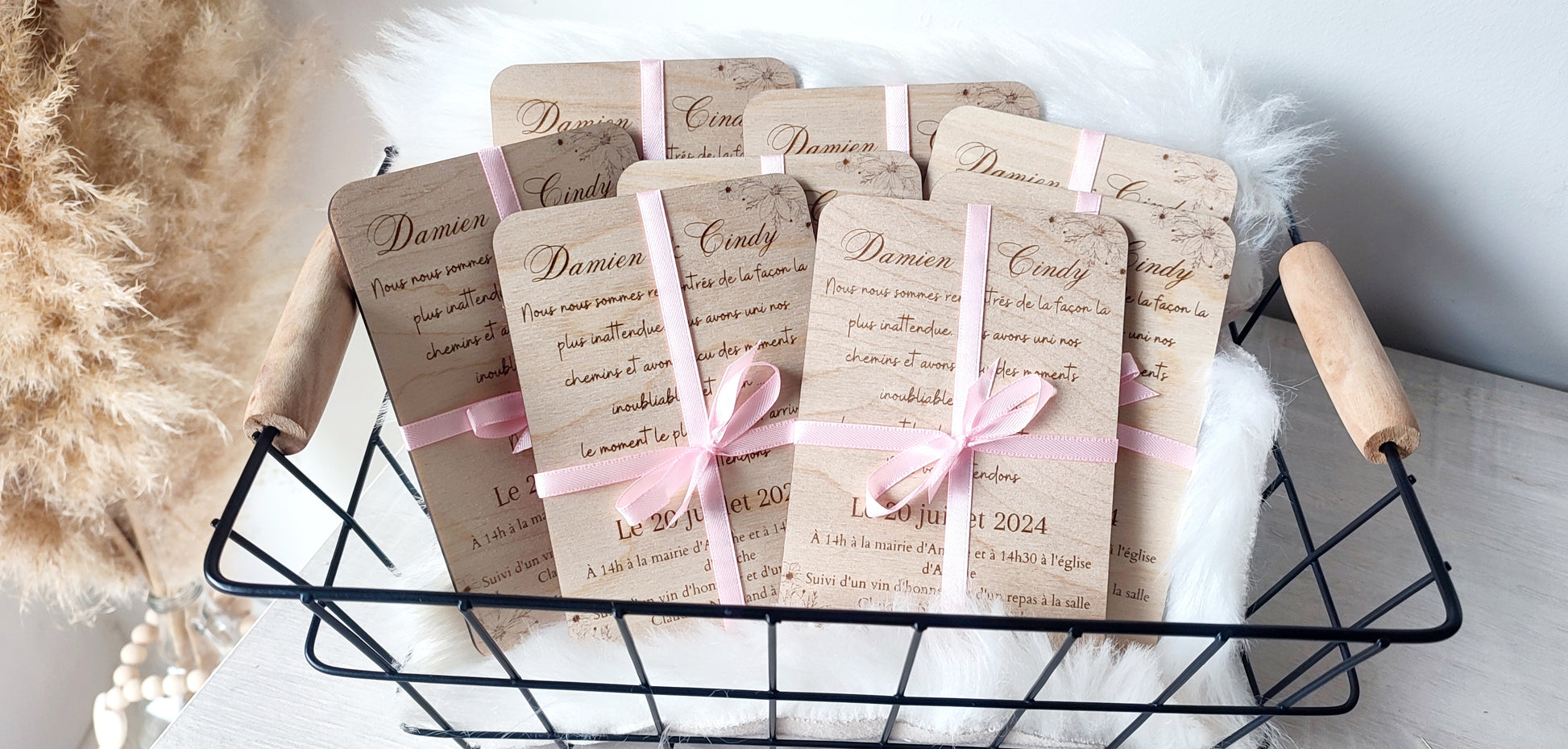 Veuillez nous indiquer vos informations de faire part ainsi que la couleur du ruban si vous en désirez un dans la case commentaire avant la validation de votre commande.